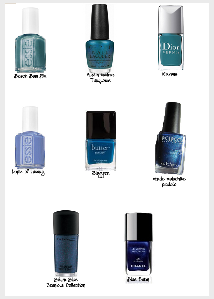 So until then I am bringing you another S/S Trend for 2011, blue, azzurro, like the sky is huge for nail wear this spring. And I mean HUGE! Blue in all of its hues from light blue to navy to teal, dig it out of your makeup box or go buy a new bottle and get it on your toes and hands baby! Rock it. Not to mention it is a fabulous color that goes with every skin tone and everything. Below I have provided you with a few example of the oh so popular blue. Andiamo!