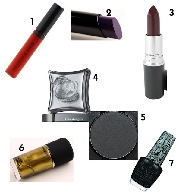 Did you guys know that even though I am a Spring baby my favorite season is Autumn? I particularly love the colors in makeup during this time, berries, purples, and stained. Smokey grays and red-oranges. I mean makeup is amazing during this time. I am completely obsessed with Fashion Fair's Lip Teasers, these lovely sheer but vibrant colored lip glosses--and they are not sticky yippee-- are amazing. You can put on one layer for a sheer coat or layer it up for a richer pay-off. And they come in a variety of shades. Of course my favorite is Brave Babe. Hello! I'm loving what Fashion Fair is doing with the brand--be on the look out for the much anticipated write up on their new foundations. And Mac Cosmetics has done it again and went and made an alternative to my Cyber lipstick obsession with this sexy Mattene lipstick Potent Fig. And you know a girl can't resist this sexy shade of gold nail polish coupled with some black crackle lacquer to make it more edgy. And Illamasqua! Need I say more?