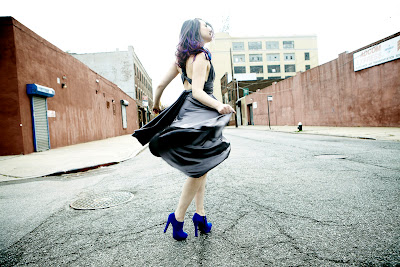 Usually during the day we're travelling; we're in the mini-van, shlepping from the last gig to the next destination. America can look pretty similar from highway to highway and one rest-stop to another, but I personally never want to blend in! I make more friends just being myself, wherever I am: colorful, sparkly and a little eccentric. Basically, my "day look" consists of a light amount of foundation (L'Oreal or Revlon), a little blush (Maybelline or Smashbox), bright red lipstick (Revlon or Wet and Wild), translucent powder (Cover Girl or Smashbox) and black eyeliner (Mattése).