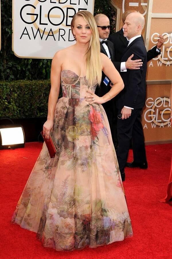 I actually adored the Rani Zakhem floral number that the newly married Kaley Cuoco is wearing.
