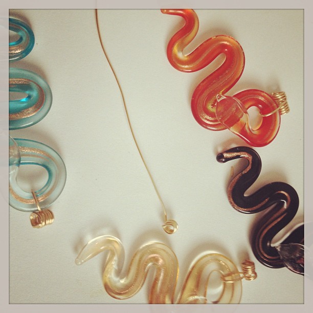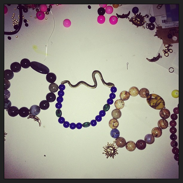 There's a lot of colors and a lot of earthy tones. I've used czech fire-polished beads, semi-precious stone beads, and cute charms; stacked bracelets and snake charm necklaces and bracelets (it is the year of the snake). I am still working on the collection because I am still waiting (2 months) for some of the items to come in.