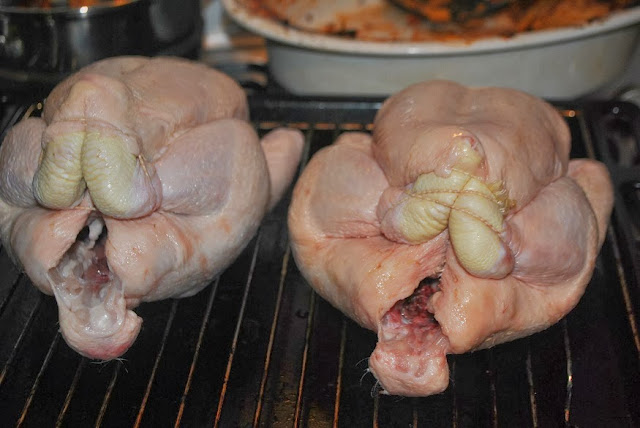 There goes my attempt at being a vegetarian. My friend's boyfriend and his brother went out and bought these two lovelies and we got to work. Look at them, sitting pretty, trying their best to be ladies. No buffoonery around here.